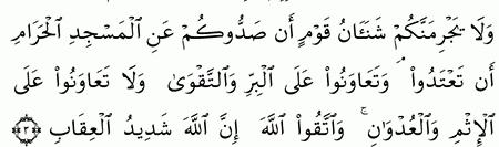 وتعاونوا على البر والتقوى ولا تعاونوا على الإثم والعدوان واتقوا الله إن الله شديد العقاب