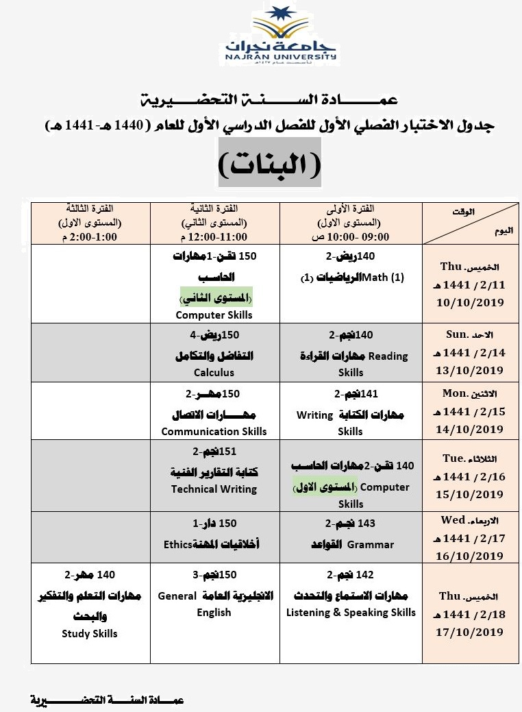 جدول الدراسي ١٤٤١ التقويم الجامعي للعام الدراسي ١٤٤١ هـ