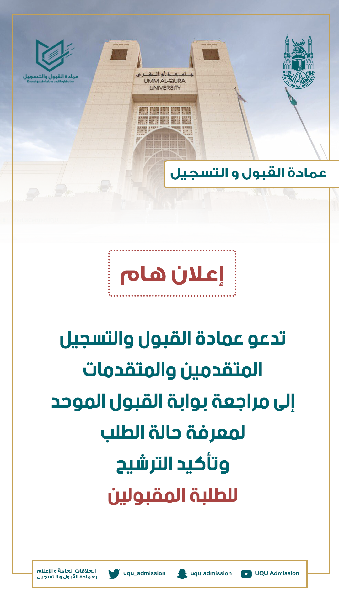 عمادة القبول و التسجيل On Twitter إجراءات ومواعيد القبول للعام الجامعي 1442هـ بجامعة أم القرى