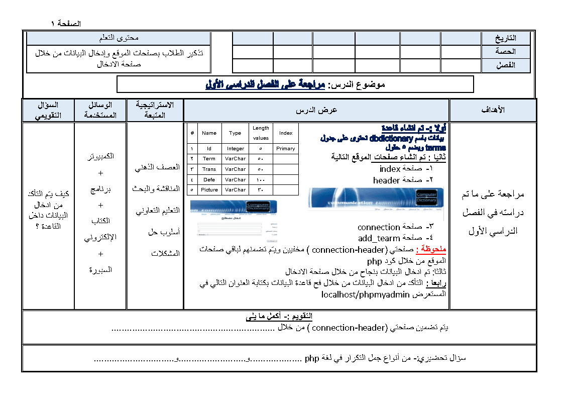 دفتر تحضير الدروس لغة عربية doc جاهز للطباعة.