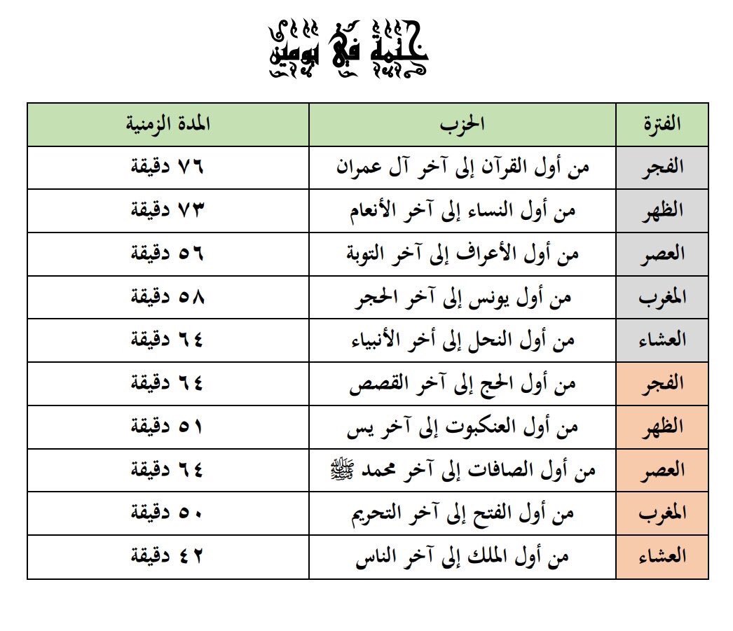 جوهريات على تويتر جدول تفصيلي لختم القرآن الكريم في يوم واحد يومين ثلاثة ايام اربعة ايام لايك قد تحتاجها في رمضان