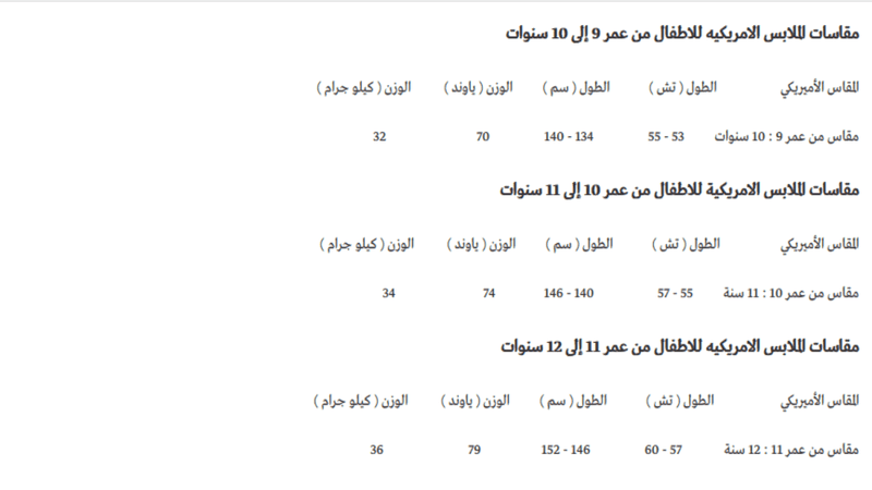 مقاسات الملابس الامريكية للاطفال حسب العمر موسوعة فنون الثقافية