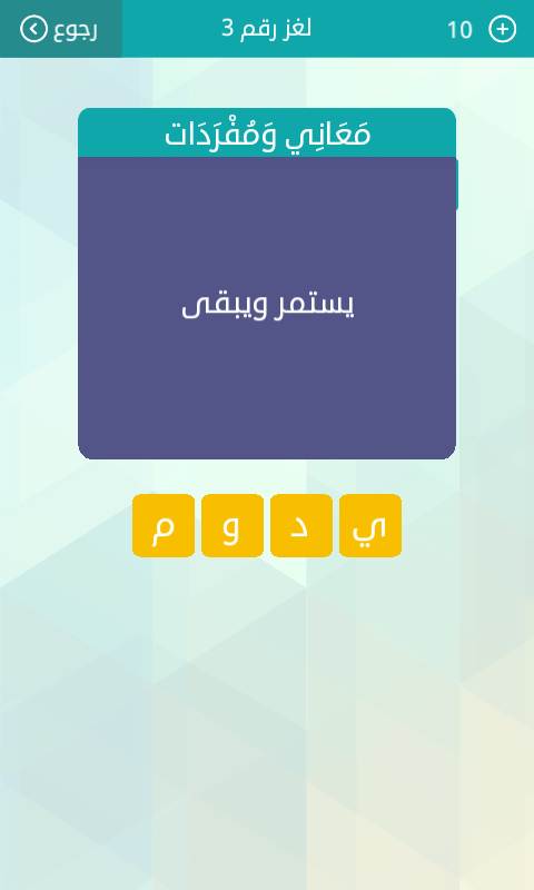 حل سؤال معانى ومفردات يستمر او يبقى من لغز رقم 3 من لعبة وصلة فى المجموعة الاولى صقور الإبدآع