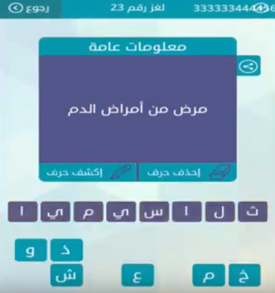 حل سؤال مرض من امراض الدم من لعبة وصلة المجموعة الثالثة لغز رقم 23 صقور الإبدآع