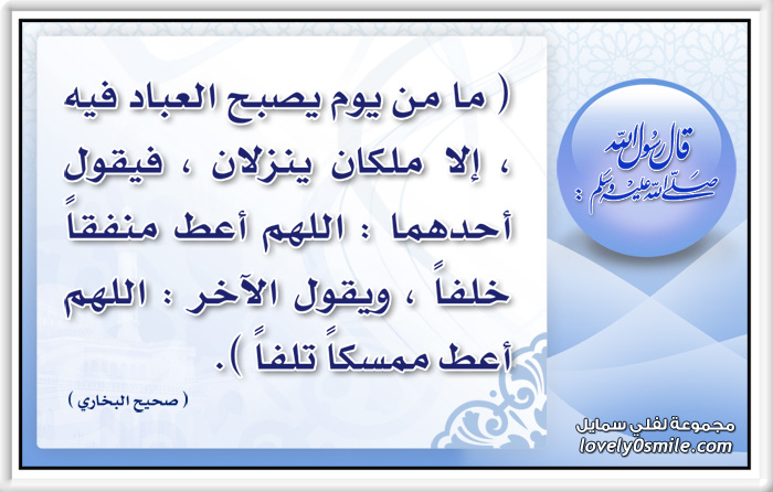 ما من يوم يصبح العباد فيه إلا ملكان ينزلان فيقول أحدهما اللهم أعط منفقا لفلي سمايل