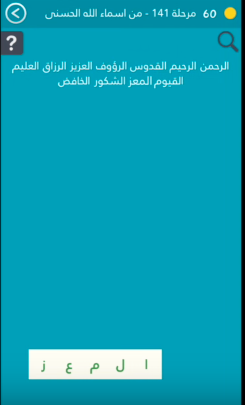 جواب هى مرحلة 141 من اسماء الله الحسنى من لعبة كلمة السر 2 صقور الإبدآع