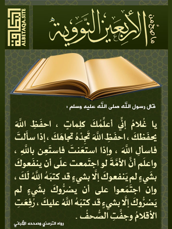ما صح من الأربعين النووية يا غلام إني أعلمك كلمات موقع البطاقة الدعوي