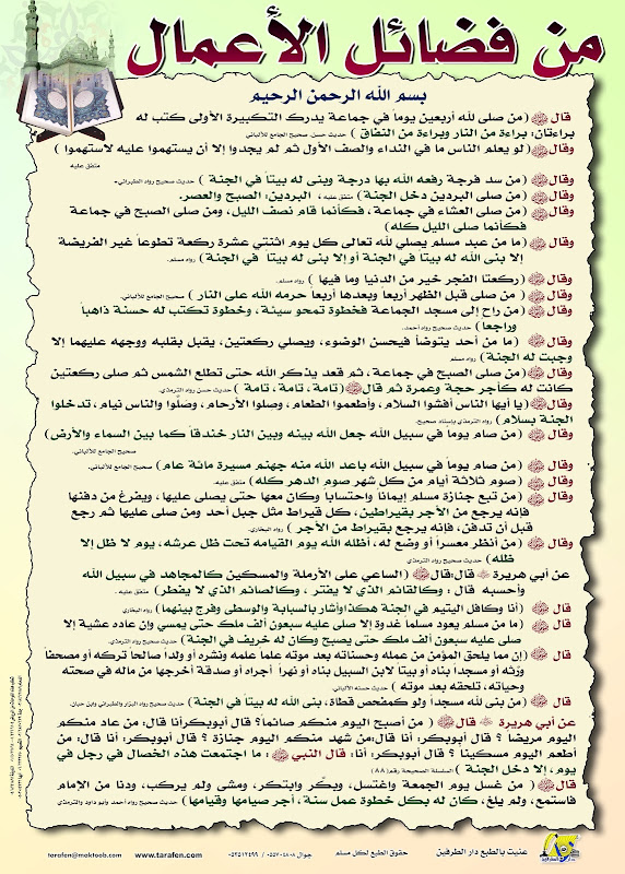 فضائل الأعمال وحسناتها بطاقات دعوية