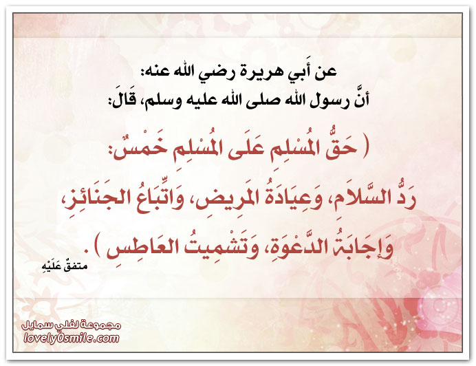 حق المسلم على المسلم خمس رد السلام وعيادة المريض واتباع الجنائز وإجابة الدعوة وتشميت لفلي سمايل
