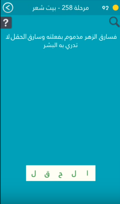 حل مرحلة 258 بيت شعر من لعبة كلمة السر 2 صقور الإبدآع