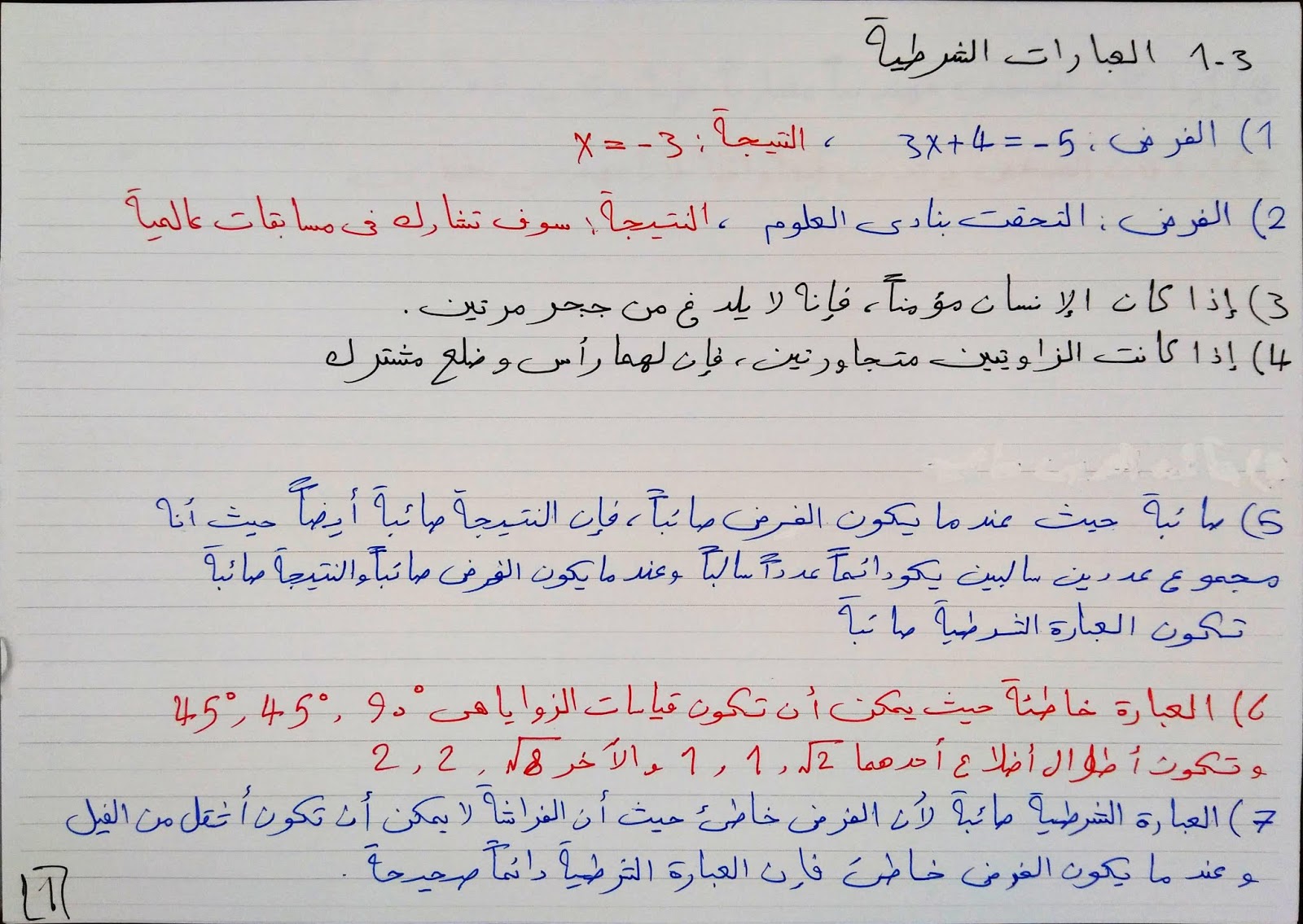 العبارات الشرطية رياضيات 1 أول ثانوي المنهج السعودي