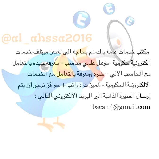 دليل الأحساء V Twitter وظائف نسائية مطلوب فتيات للعمل لدى مكتب خدمات عامه وخدمات الكترونيه في الاحساء