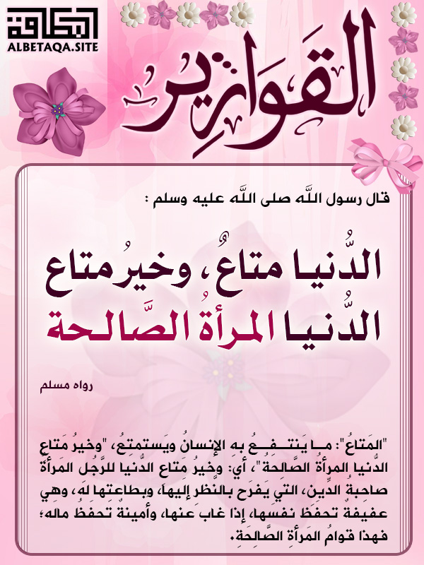 ع ن ع ب د الل ه ب ن ع م ر و أ ن ر س ول الل ه صلى الله عليه وسلم ق ال الد ن ي ا م ت اع و خ ي ر م ت اع الد ن ي ا ال م ر أ ة الص ال ح ة اجمل واروع الصور الاسلامية والدينية 2020