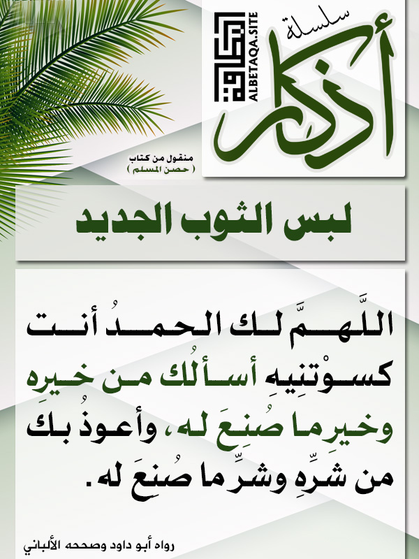 سلسلة أذكار لبس الثوب الجديد اللهم لك الحمد أنت كسوتنيه موقع البطاقة الدعوي