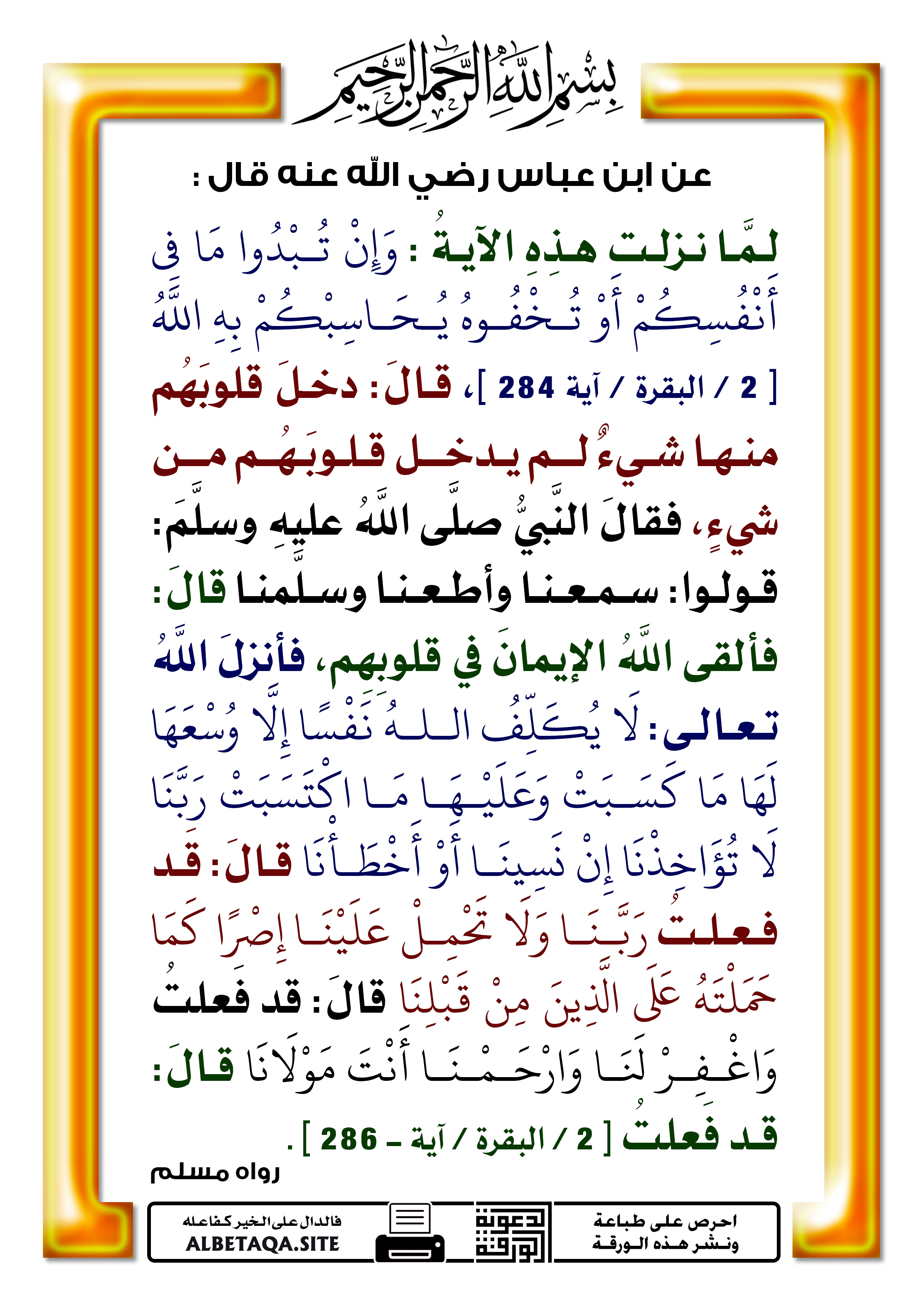 وإن تبدوا ما في أنفسكم أو تخفوه يحاسبكم به الله موقع البطاقة الدعوي
